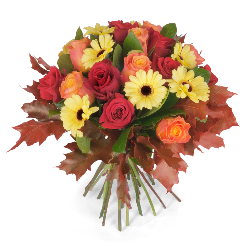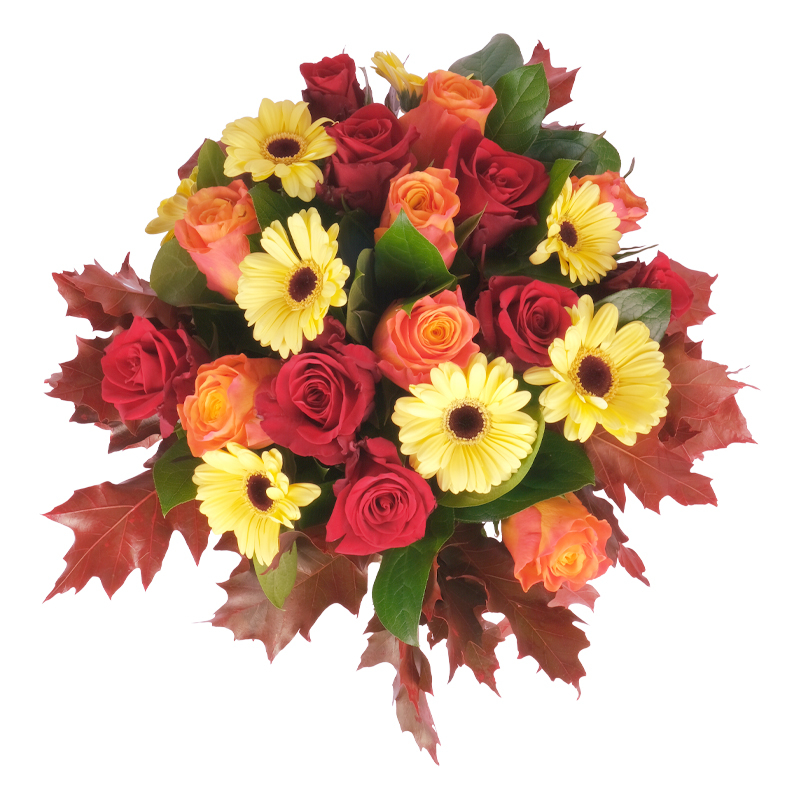 Bukiet „Obfita Jesień” powstał z inspiracji naturą i spokojem. Róże i gerbery otulone liśćmi klonu tworzą wyjątkowy efekt. To kompozycja, która zachwyca swoją równowagą i formą. Doskonały prezent dla bliskiej osoby. Bukiet, który dodaje wnętrzu ciepła i stylu.